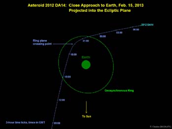 Pored Zemlje će 15. februara 2013. proleteti 45-metarski asteroid 2012 DA14, na udaljenosti od oko 27.000 kilometara od Zemlje što je bliže od satelita.
